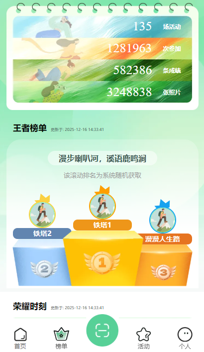 此外,亲子徒步小程序的底部导航栏设计简洁明了,首页、榜单、活动、个人中心等功能一键切换,操作便捷。不管是想找徒步灵感、参与赛事挑战,还是记录自己的徒步足迹,都能在这个小程序里实现。