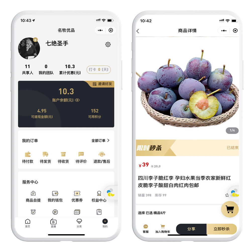 项目名称:名牧优品直播分销商城小程序